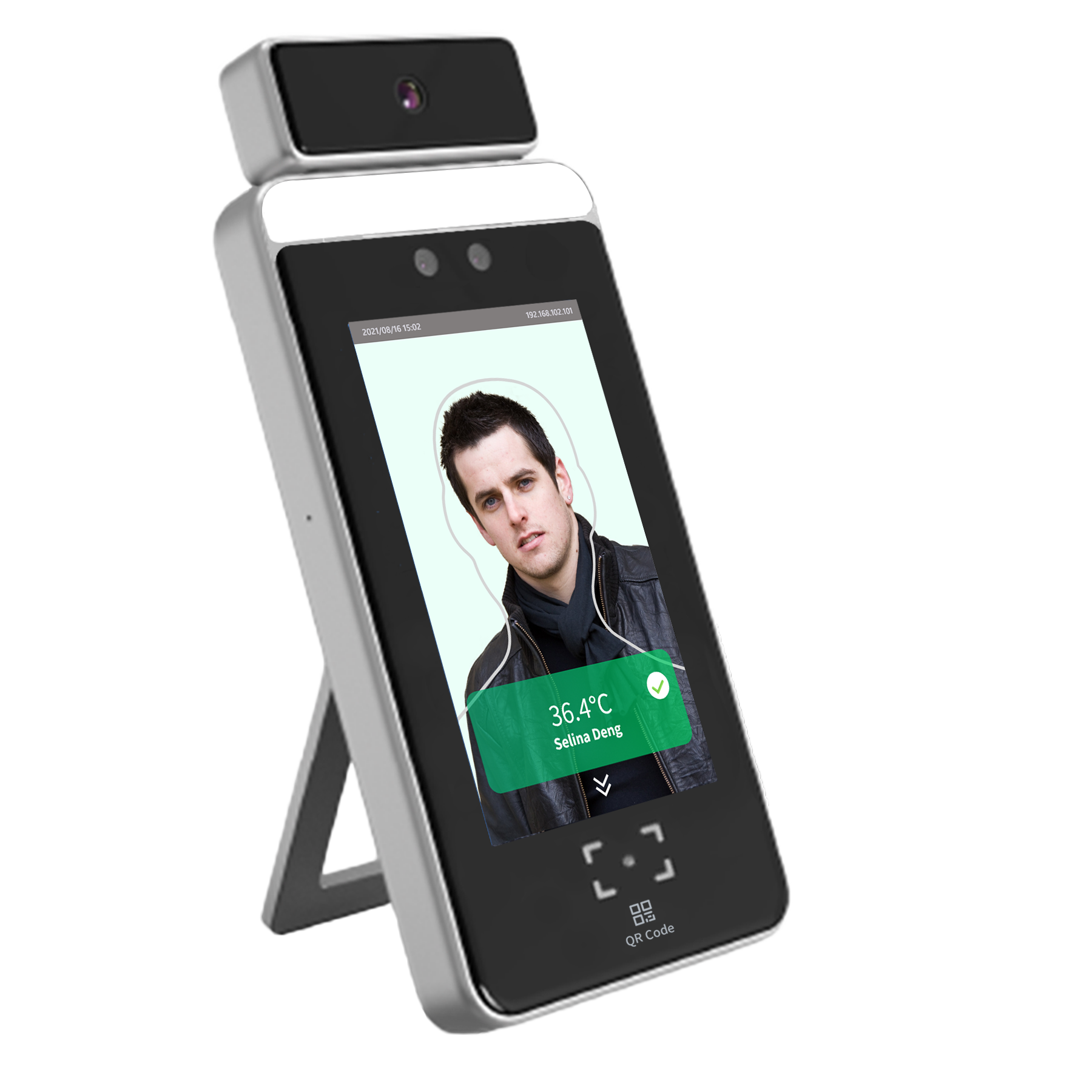 Сканер QR-кодов с измерением температуры тела ТЕРМО-02-QR-T, производства компании "Мелдана", идеально подходит для проверки температуры тела и контроля QR-кодов.